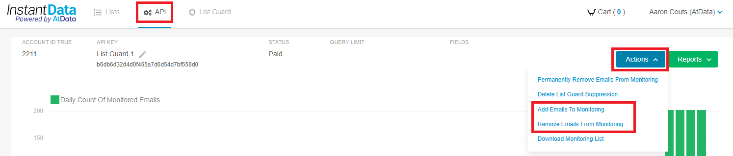 After logging into InstantData, click on the API tab, then find your List Guard API key.