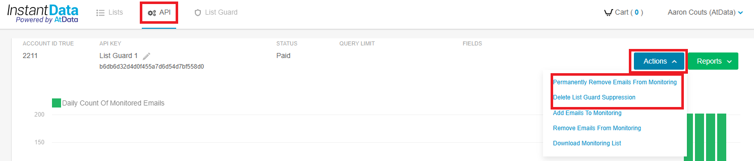 After logging into InstantData, click on the API tab, then find your List Guard API key.